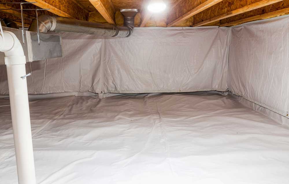 We install a heavy-duty vapor barrier across the crawlspace floor and walls, sealing seams and penetrations to block ground moisture.
